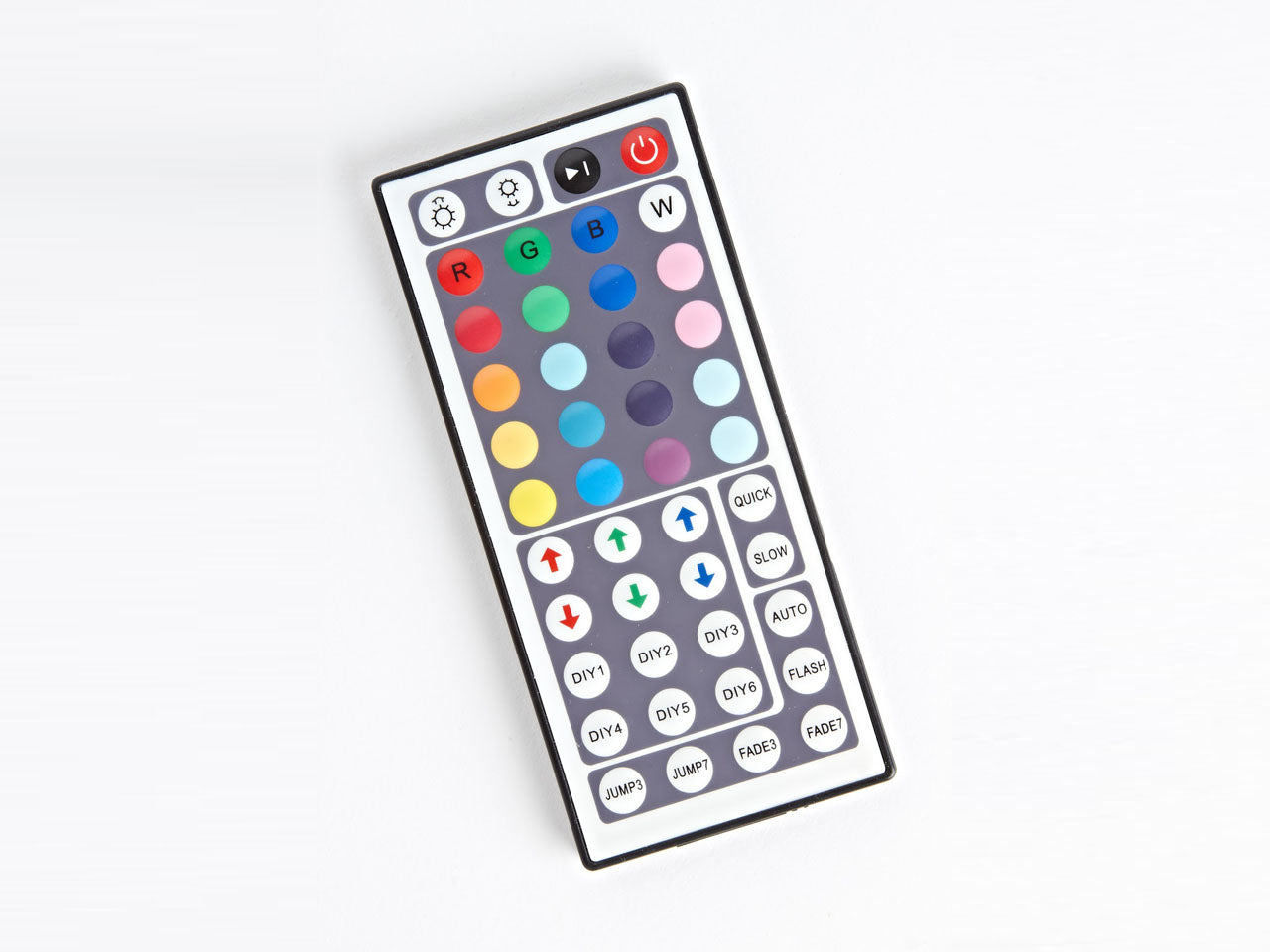 Wireless RGB Remote: 44-key controller provides full color selection and lighting effects.