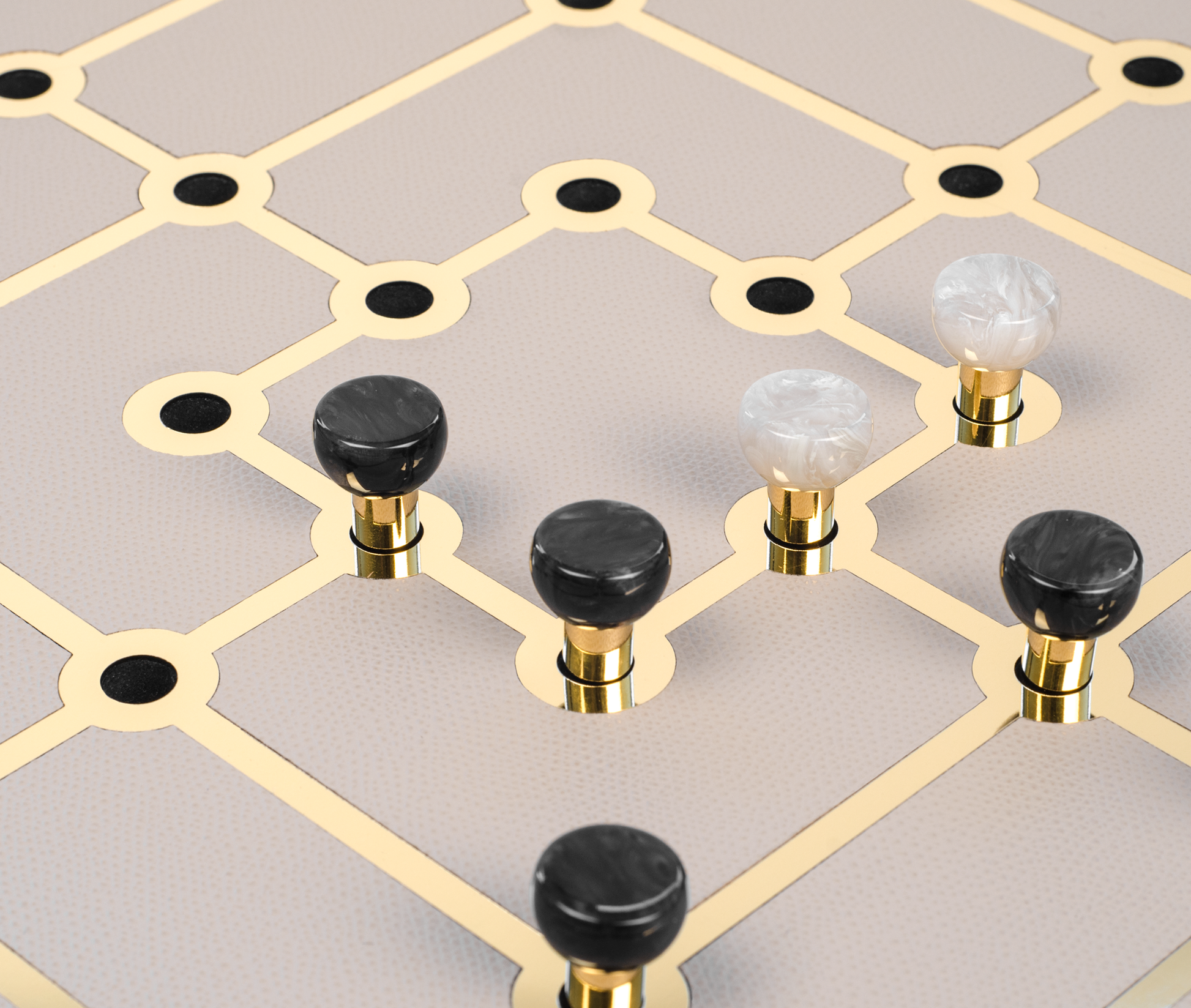 Classic strategy meets luxurious design in the Pinetti Mill Game Set, a stunning addition to Pinetti’s renowned leisure collection. Handcrafted in Italy, this elegant board game features a wooden structure covered in soft calf leather, delicately accented with shiny gold details. The eco-shell pawns add a refined natural touch, blending sophistication with sustainability. Designed as both a functional game and decorative statement piece, the Pinetti Mill Game Set enhances any interior with timeless elegance and modern artistry.